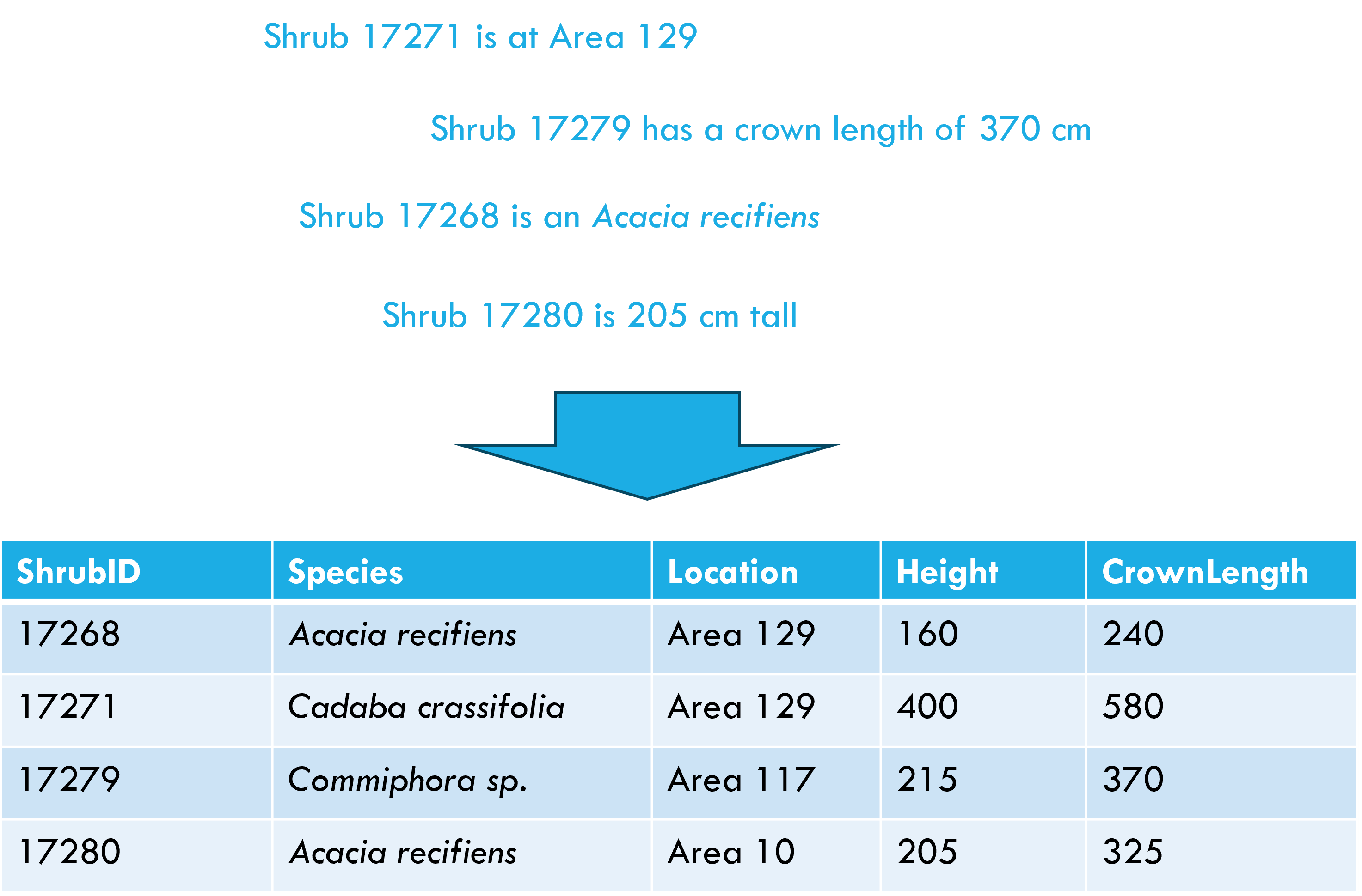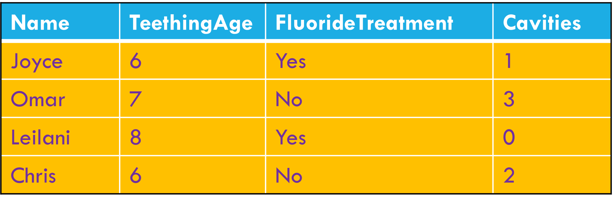 Each observation forms a row