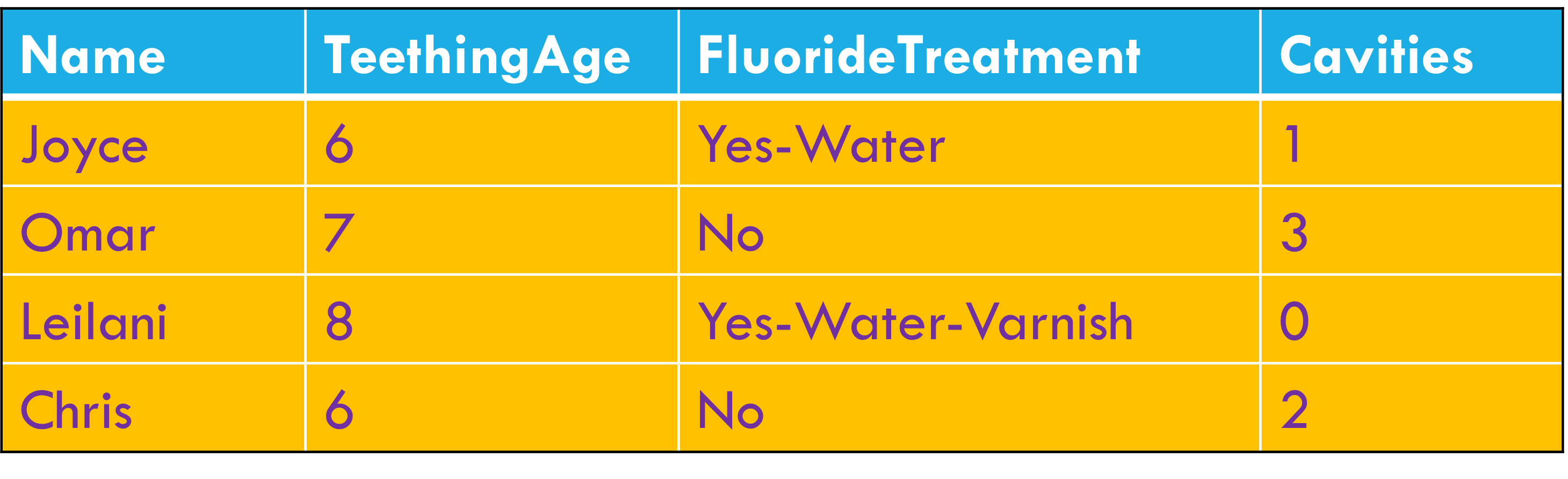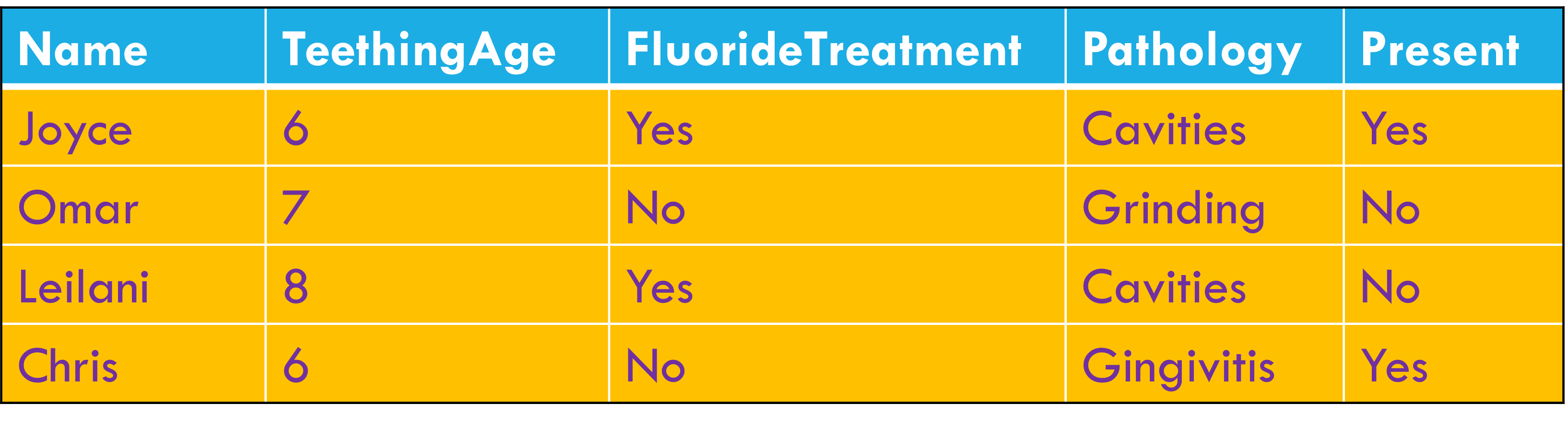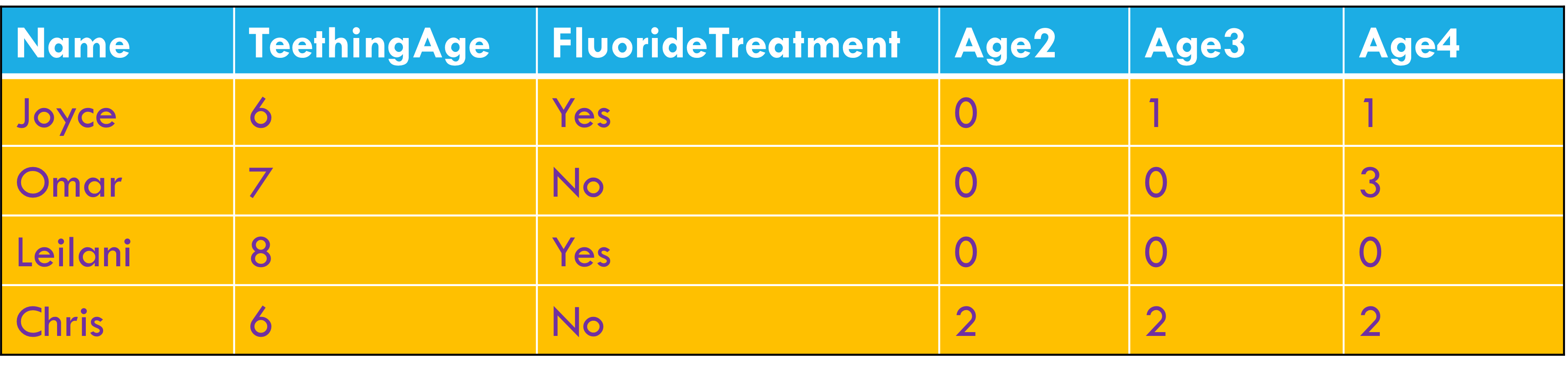 Column headers are values, not variable names.