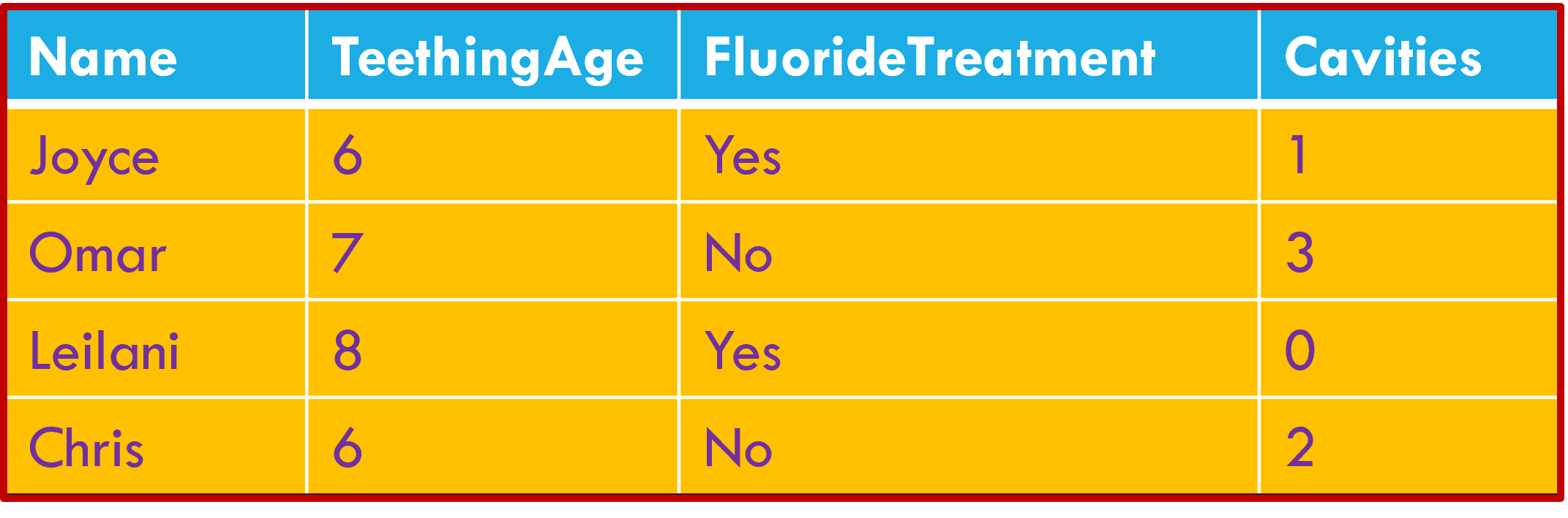 Each variable forms a column