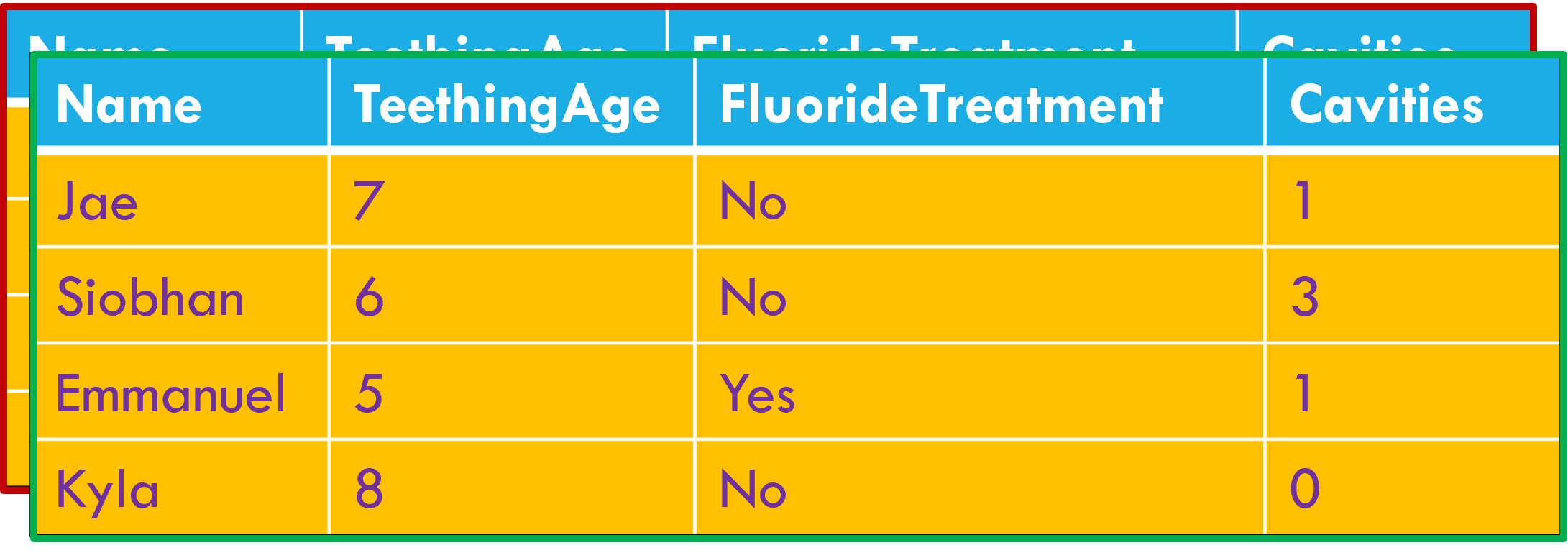 Variables stored in both rows and columns.