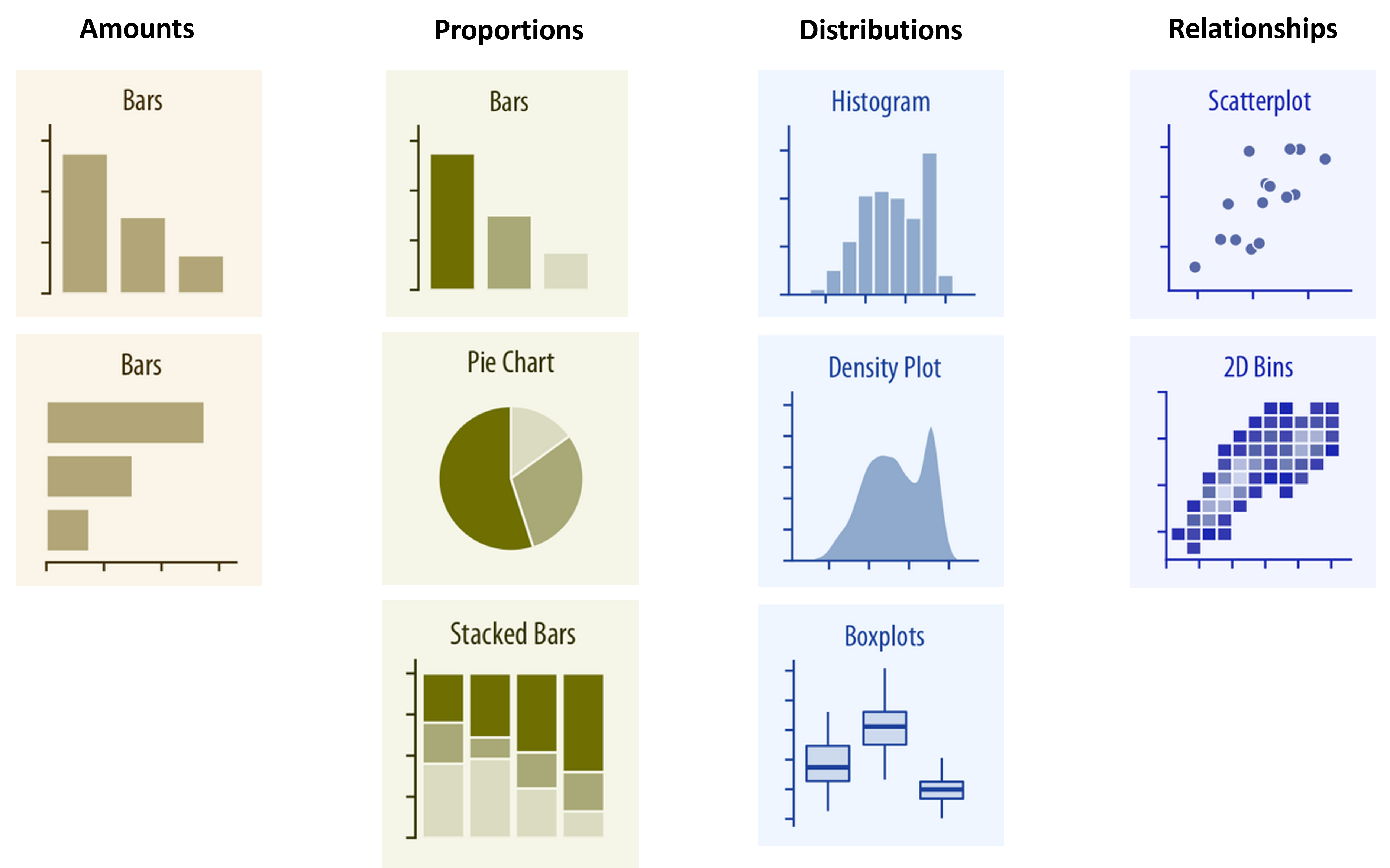 The type of visualization that should be used depends on the kind of information being conveyed.