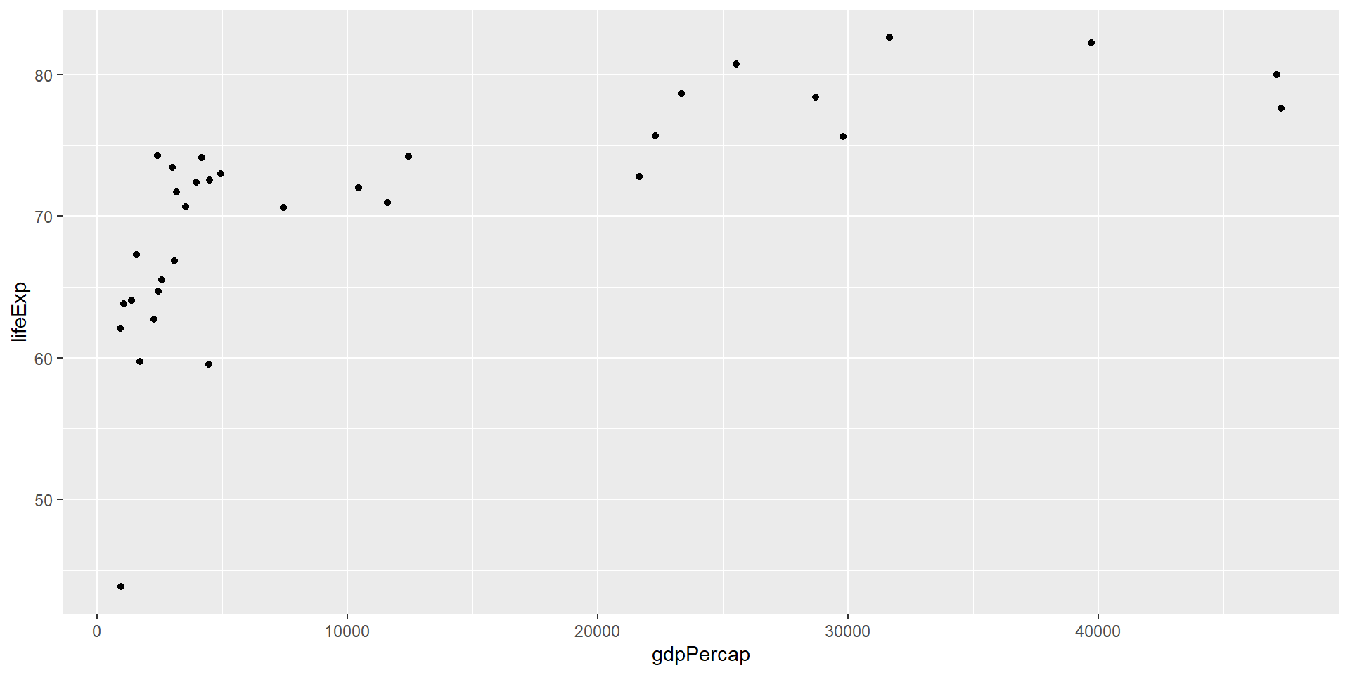 ggplot(data=gm2007,aes(x = continent, y = lifeExp, color = continent)) +geom_boxplot() +geom_jitter()