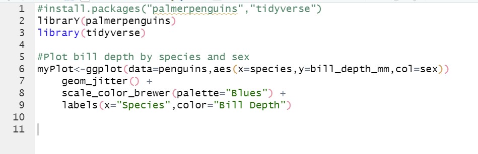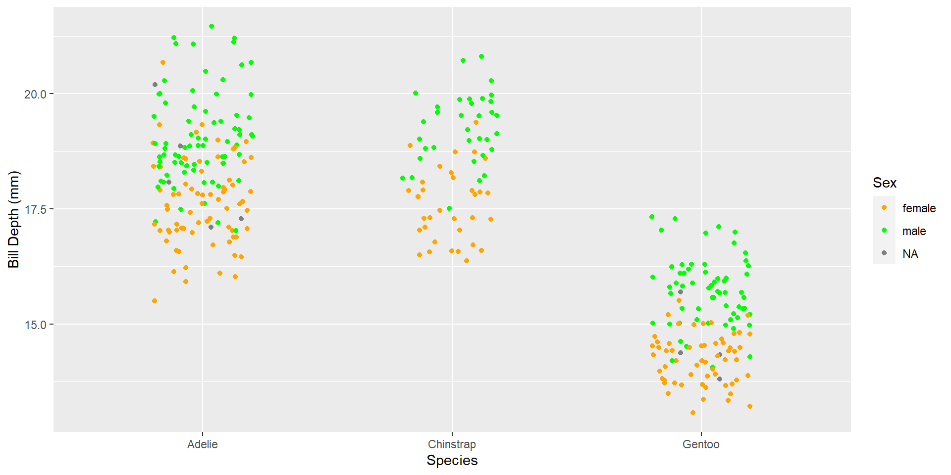 myPlot<- ggplot (data= penguins,aes (x= species,y= bill_depth_mm,color= sex))+